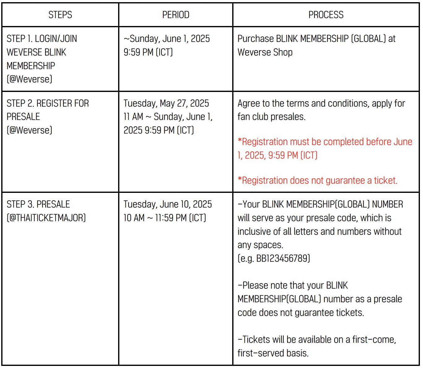 如果你不是Weverse会员也没关系——公开售票将于6月13日(星期五)上午10点(ICT时间)正式开放。同样在ThaiTicketMajor网站进行,建议提早上官网熟悉流程,甚至连付款方式都预先绑好卡才稳妥。