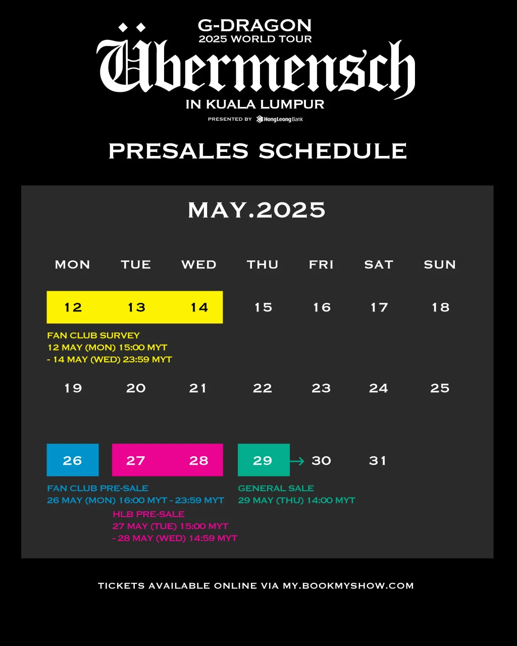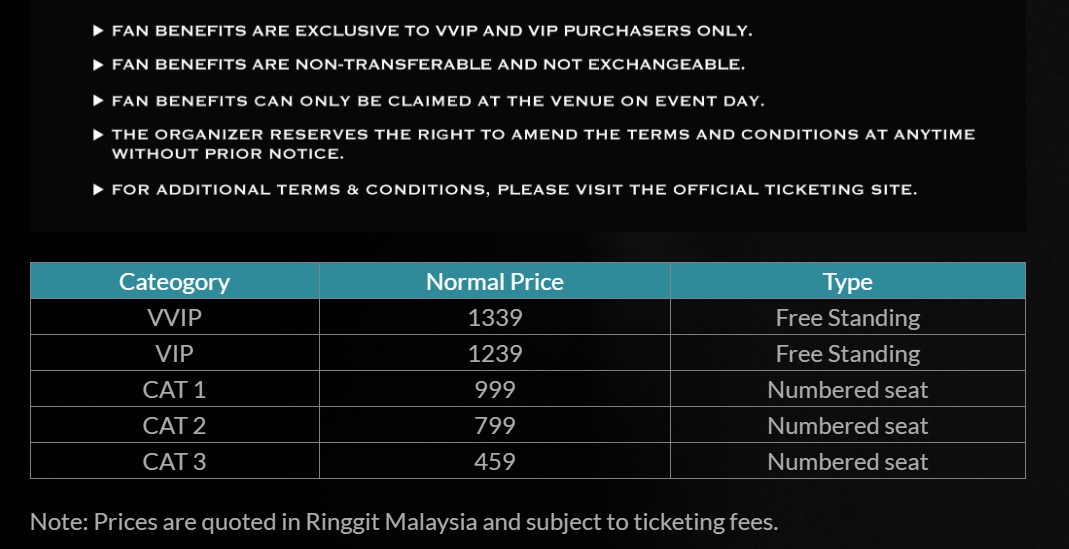 📅 丰隆银行专属预售:5月27日下午3点至5月28日下午2:59之间,只有使用VISA信用卡的用户可参与,门票先到先得。
