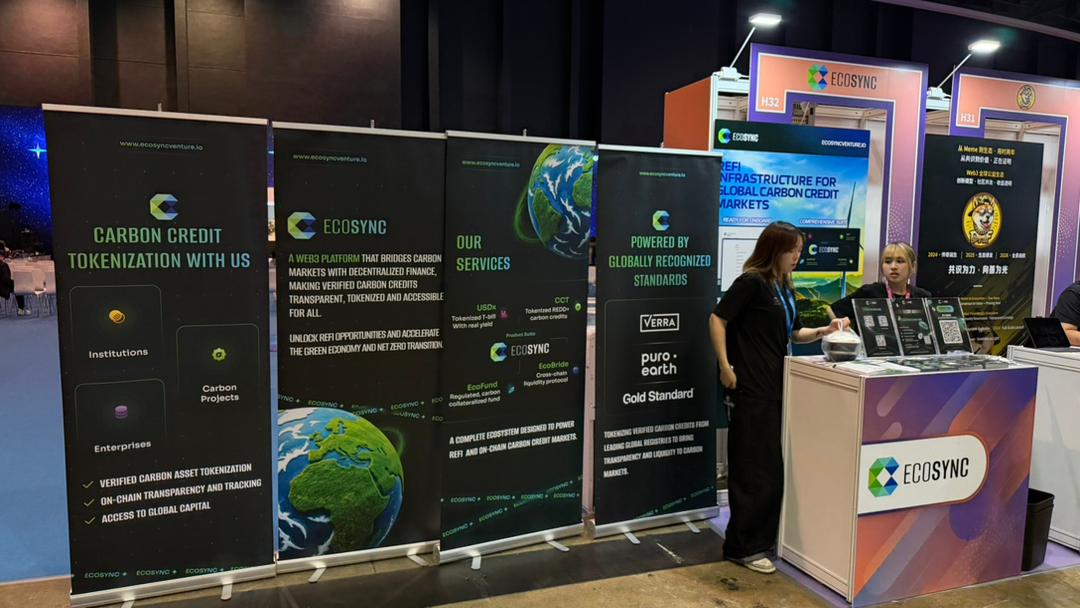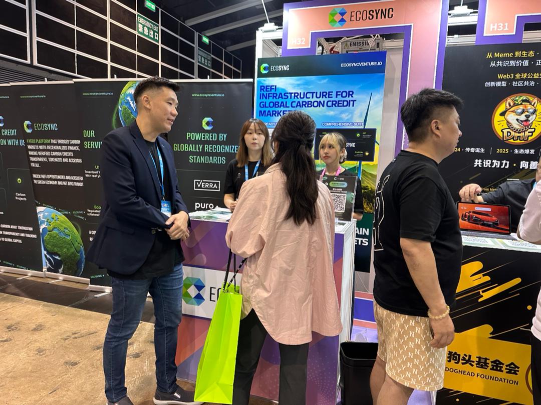 香港会议展览中心,2026 年 4 月 20 至 23 日。EcoSync 展位人气旺盛,展板上与 Verra、Puro.earth、Gold Standard 的合作认证标识吸引无数目光。这些名字代表的,是全球碳市场最具公信力的第三方核证体系——而 EcoSync 正是将这套体系与区块链的不可篡改性相结合,打造出一套机构可信赖的链上碳资产交易基础设施。